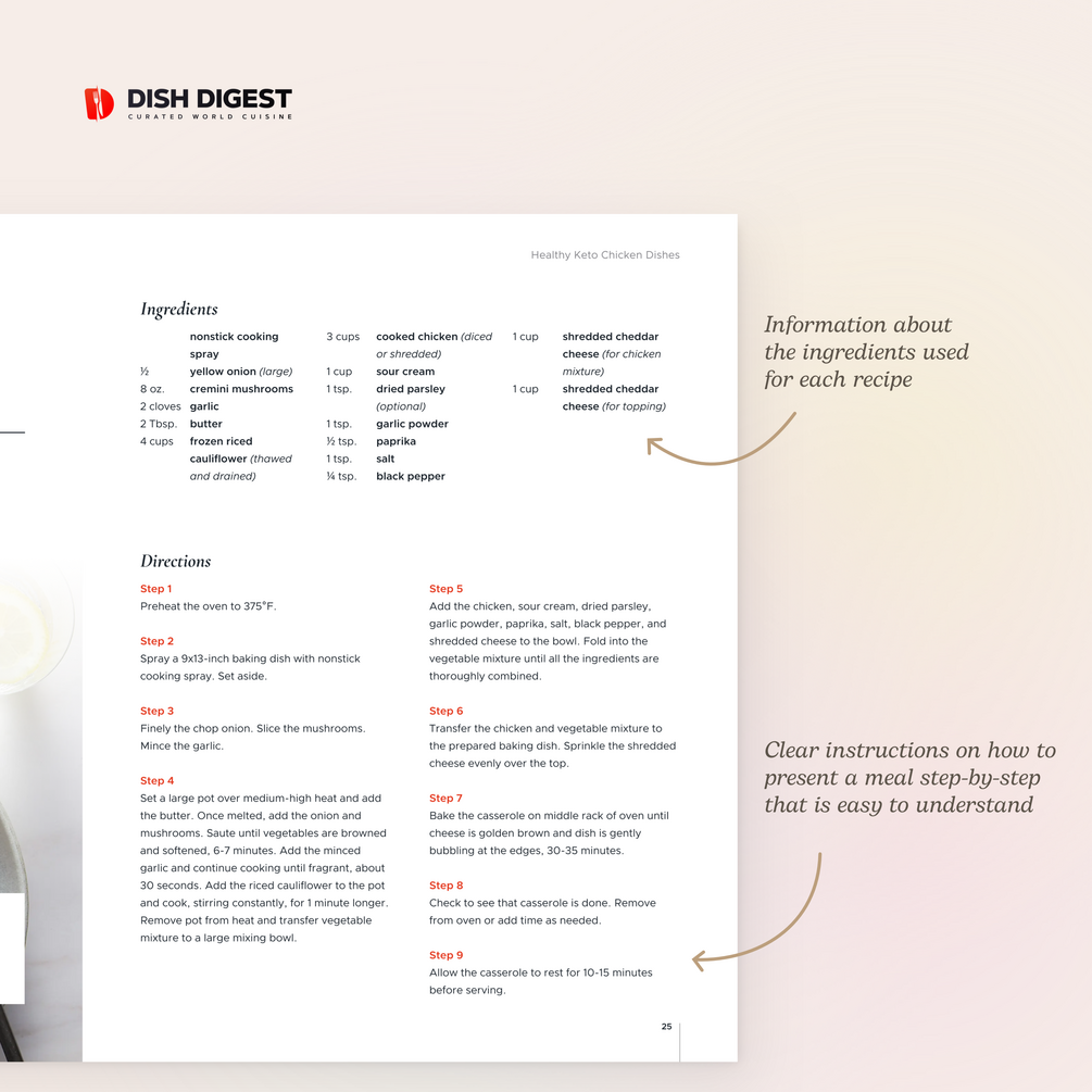 This cookbook is a comprehensive guide for keto enthusiasts seeking delicious variety in chicken-based dishes. As an exclusive digital cookbook, this cookbook offers a carefully curated collection of 23 recipes tailored to meet the low-carb, high-fat nutritional needs.